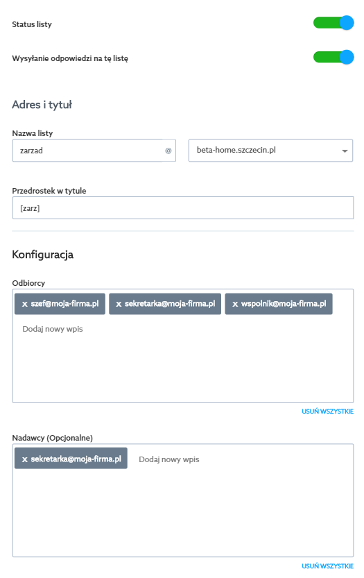 • listy mailingowe – zatrudniasz coraz więcej osób? Stwórz listę mailingową! Jeżeli chcesz wysłać maila do konkretnego działu, nie musisz wpisywać adresów wszystkich pracowników. Wystarczy adres listy, do której dopisane są wybrane skrzynki email. W przypadku firmy transportowej może to być kierowcy@firmatransportowa.com.pl, do której należą imienne skrzynki kierowców. Zapoznaj się z możliwościami listy mailingowej.