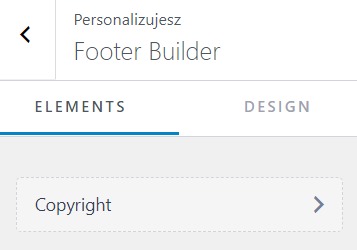 Podobnie uczyniliśmy ze stopką strony – w wersji domyślnej była przeładowana informacjami. Po przejściu do zakładki Footer Builder skorzystaliśmy z edytora stopki i zmieniliśmy jej treść.
