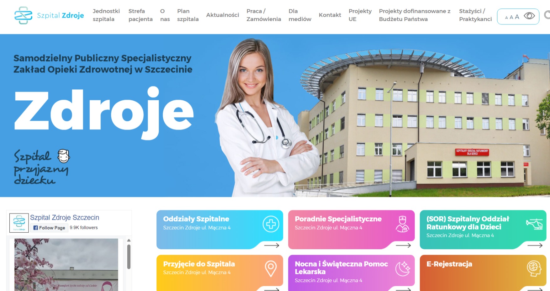 Strona internetowa szpitala Szczecin Zdroje.
